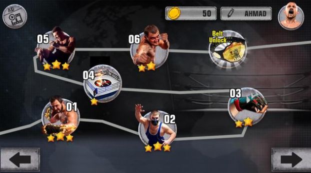 3、在擂台上将一个个对手打败,最终夺取那条象征荣誉的金腰带。
