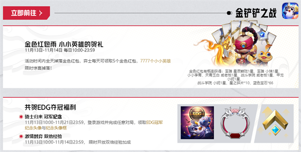 EDG夺冠福利多多,弈士们记得不要错过活动时间,上线完成活动领取限定奖励啦~