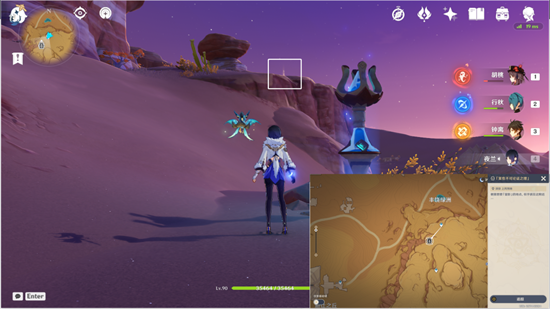 1、传送大赤沙海上风蚀地图中锚点,往地图的西南方向走,前图中指引山顶拍摄点。