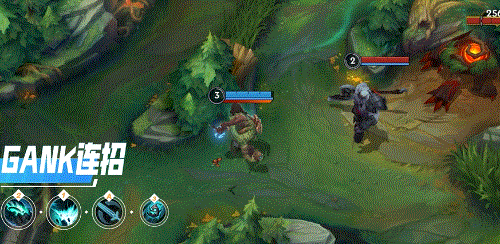 同时,我们可以衔接普攻打出被动技能的回血效果,随后施放E(3)技能减速敌人,配合队友完成GANK。