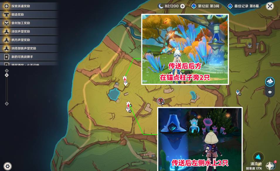 2、三个点位都需要攻击金圈,通过嵴锋龙钻地攻击,或者卡齐娜E攻击爆出。