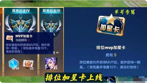 2022赛年更新之后,新增了一个名为MVP加星卡的道具,排位胜利之后能够额外获得一颗星。